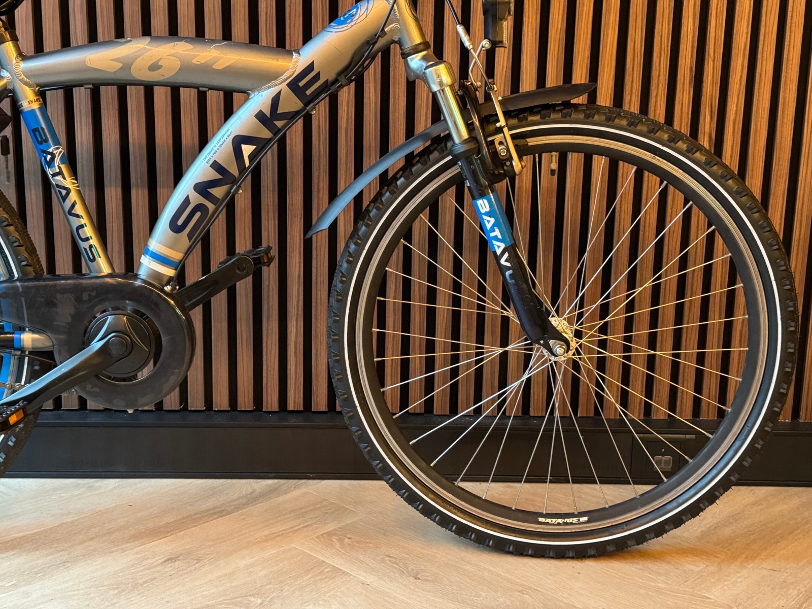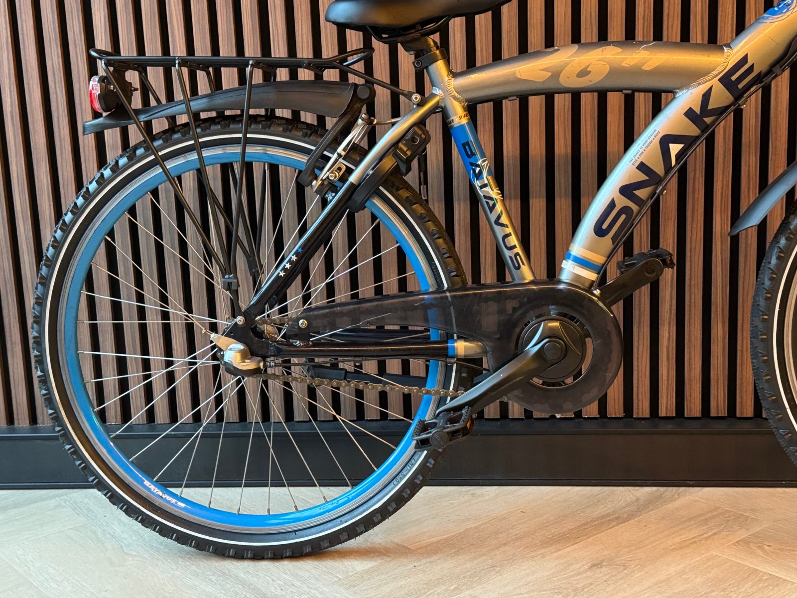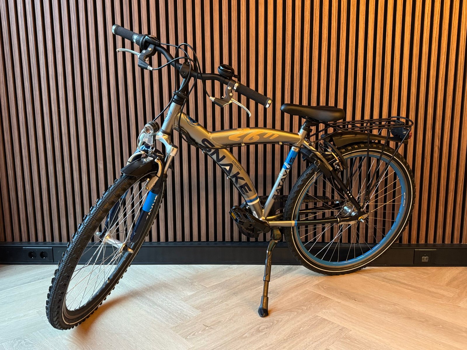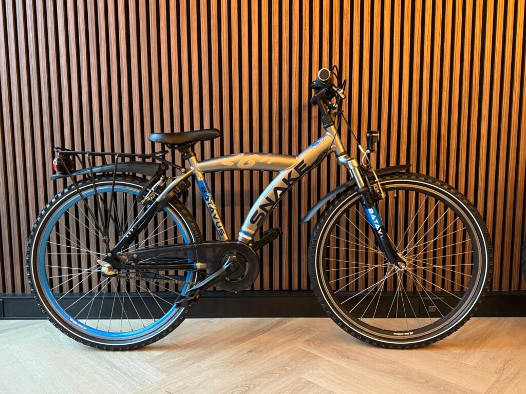 Batavus Snake 26 inch, frame maat 43 cm, in de prachtige kleur Zilver, geschikt voor kinderen tussen 9-12 jaar (145-160cm). Nexus 3 versnellingen, terugtraprem, handrem, nieuwe banden.
