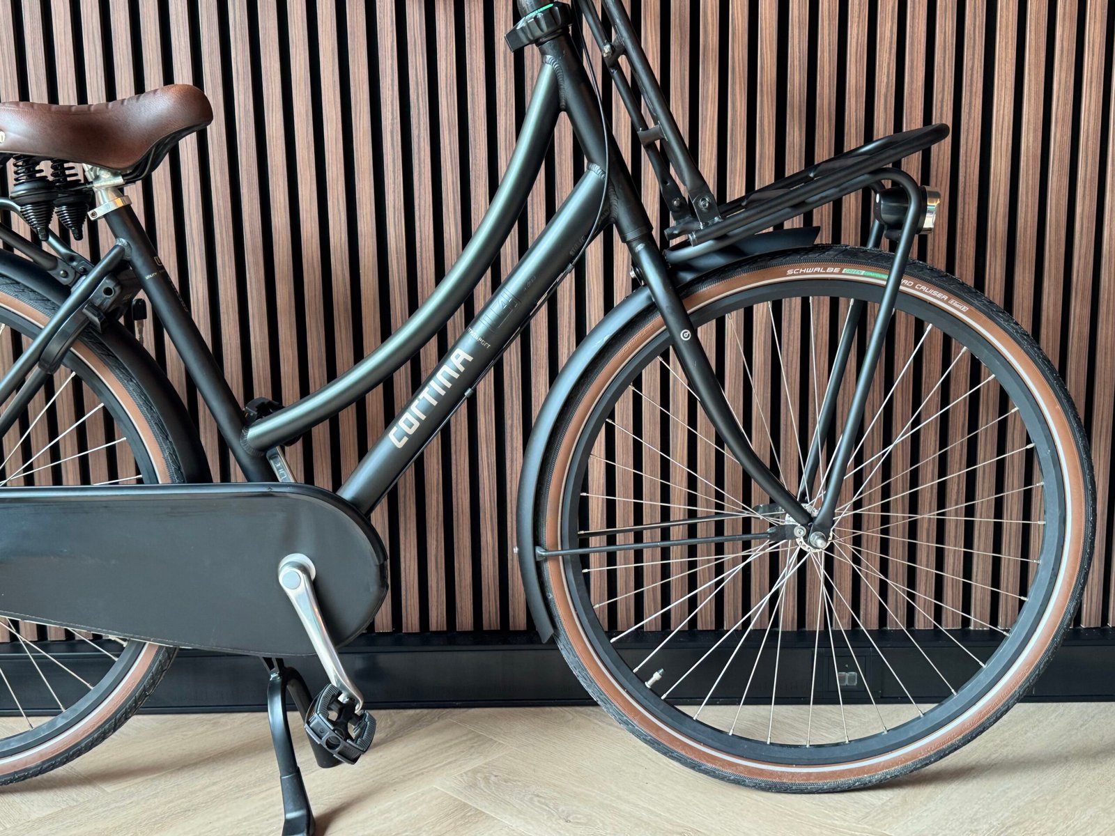 Refurbished Cortina U4 28 inch, frame maat 50 cm, in de prachtige kleur Jet Black Matt, geschikt voor een lichaamslengte vanaf 160cm. Nexus 3 versnellingen, terugtraprem, nieuwe banden.