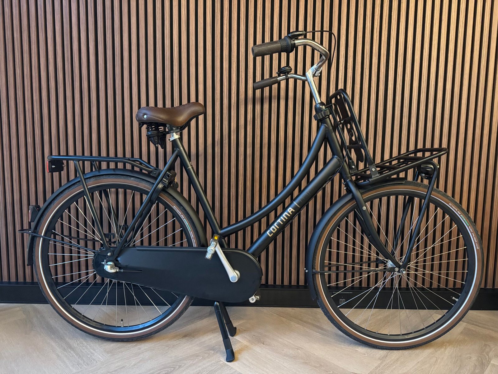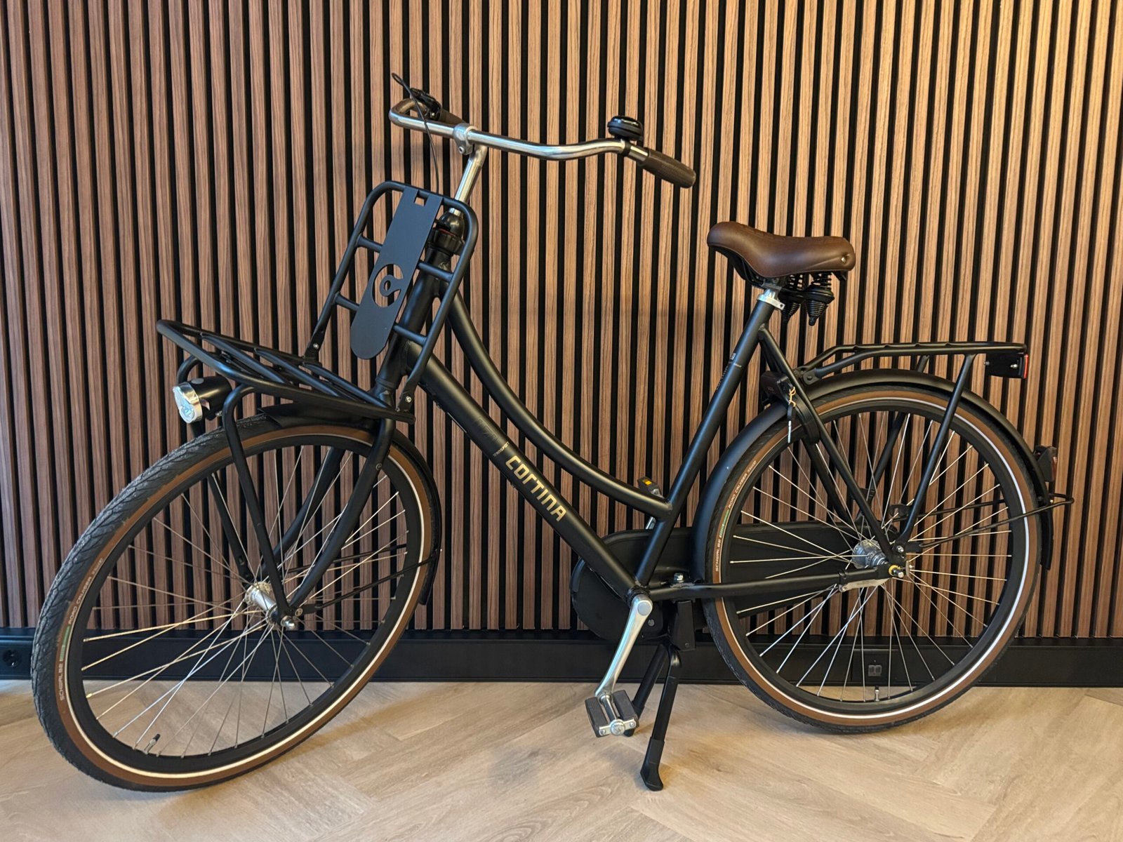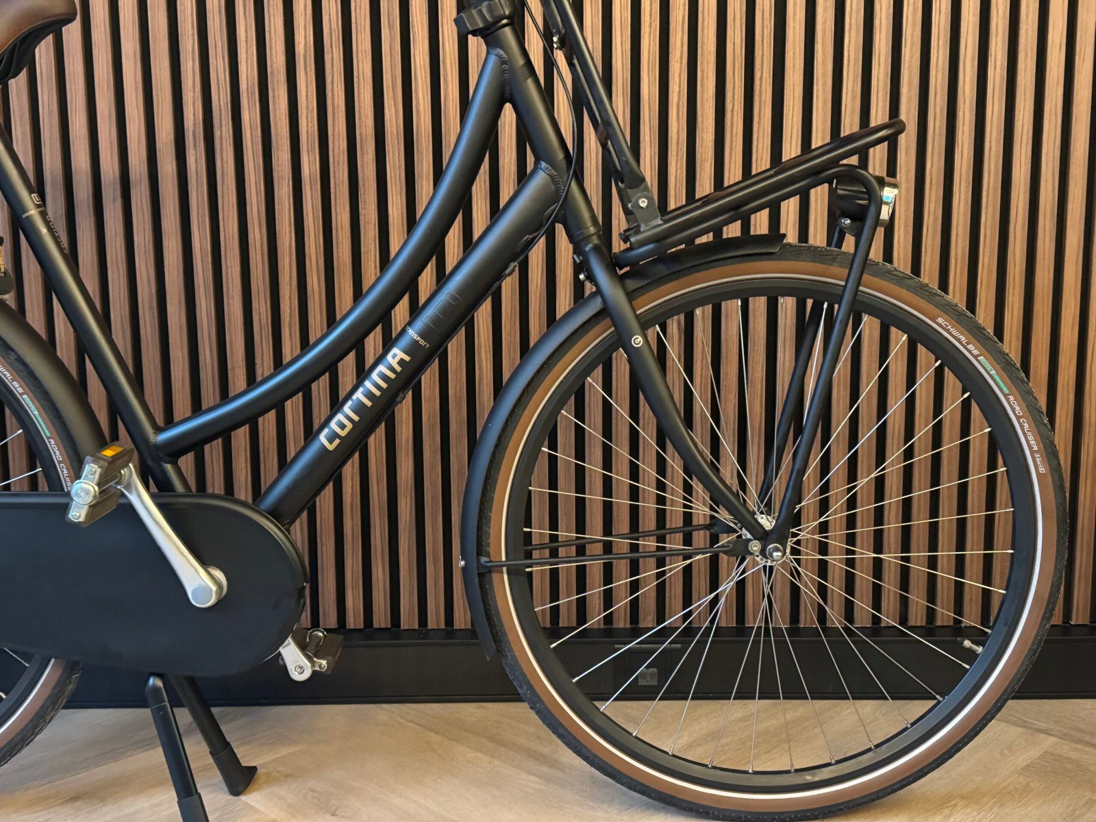 Refurbished Cortina U4 28 inch, frame maat 61 cm, in de prachtige kleur Jet Black Matt, geschikt voor een lichaamslengte vanaf 180cm. Nexus 3 versnellingen, terugtraprem, nieuwe banden.