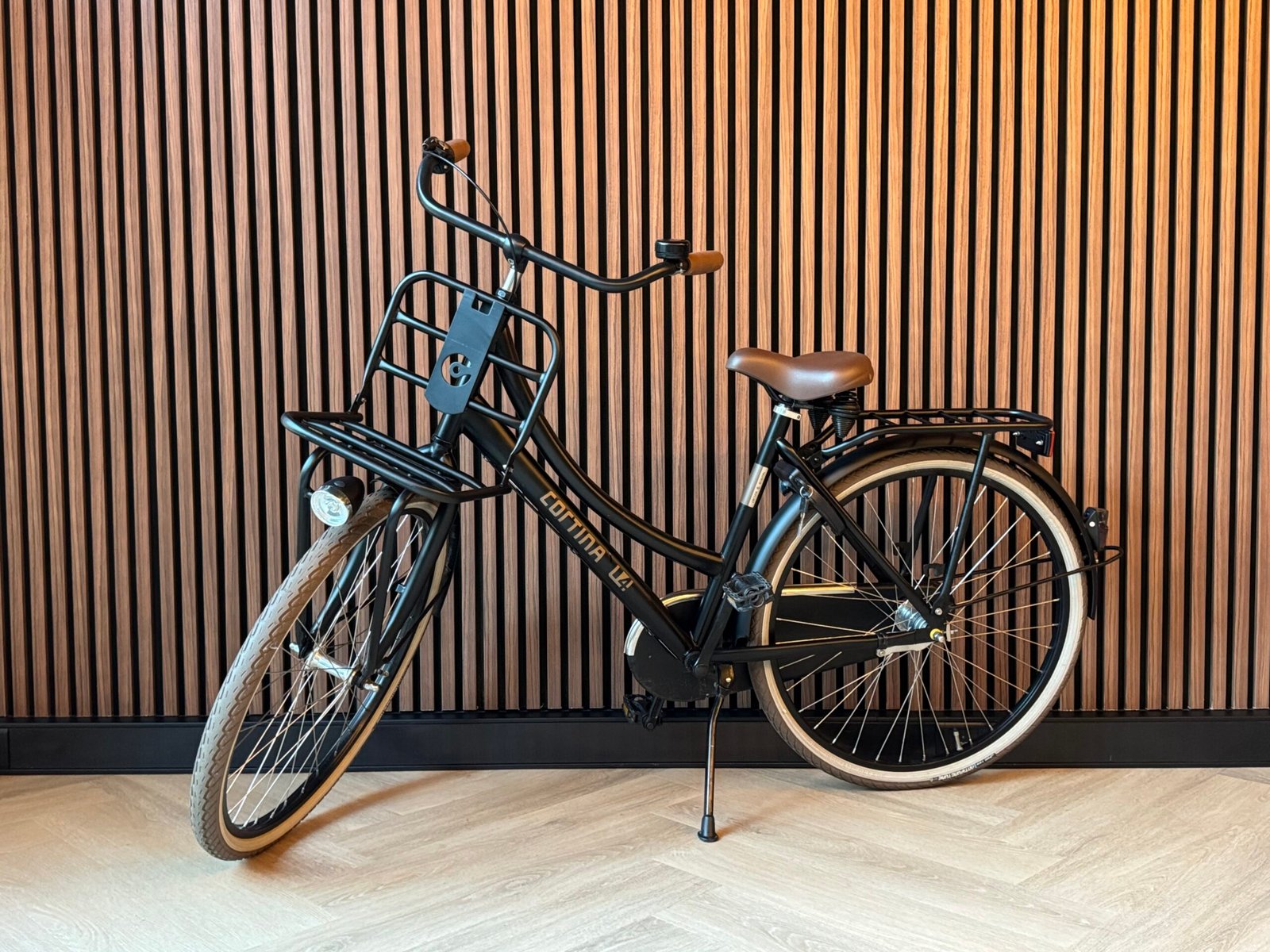 Refurbished Cortina U4 24 inch, frame maat 42 cm, in de prachtige kleur Jet Black Matt, geschikt voor kinderen tussen 7-10 jaar (135-150cm). Nexus 3 versnellingen, terugtraprem, goede banden.