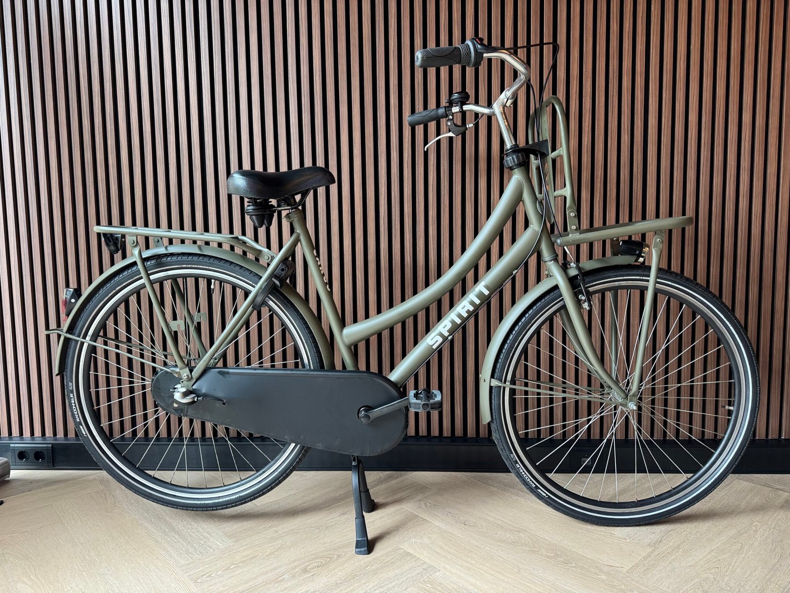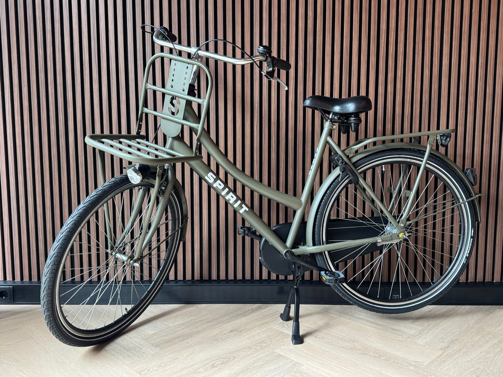 Refurbished Spirit Cargo 28 inch, frame maat 57 cm, in de prachtige kleur Legergroen, geschikt voor een lichaamslengte vanaf 170cm. Nexus 3 versnellingen, terugtraprem, handrem voor, nieuwe banden.